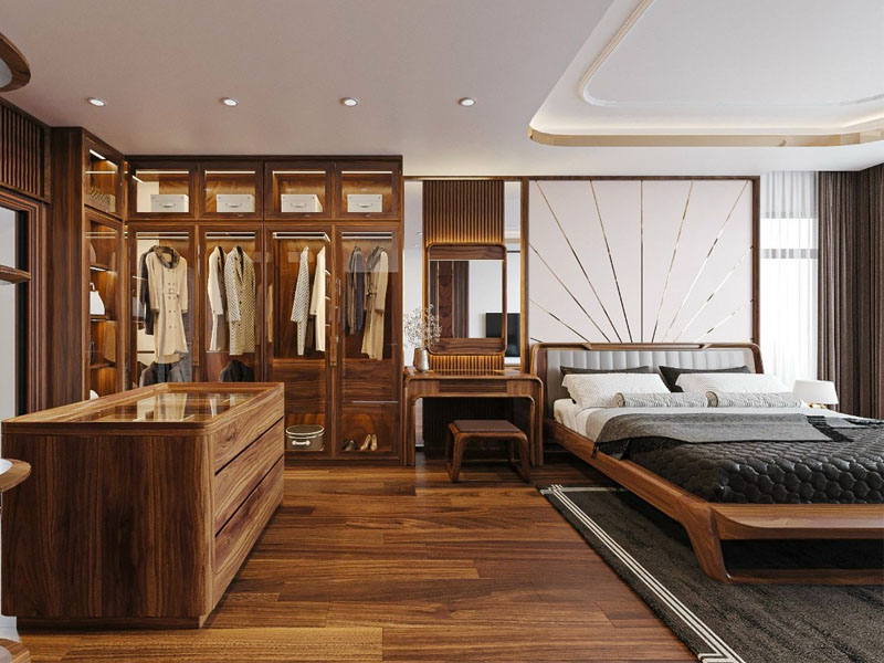 Giường tủ gỗ óc chó N009