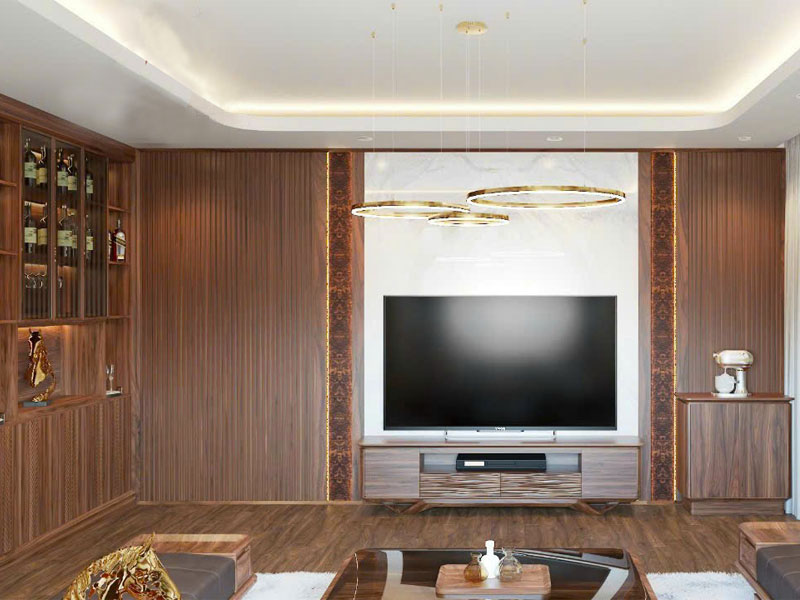 Nội thất phòng khách gỗ óc chó đẹp K001